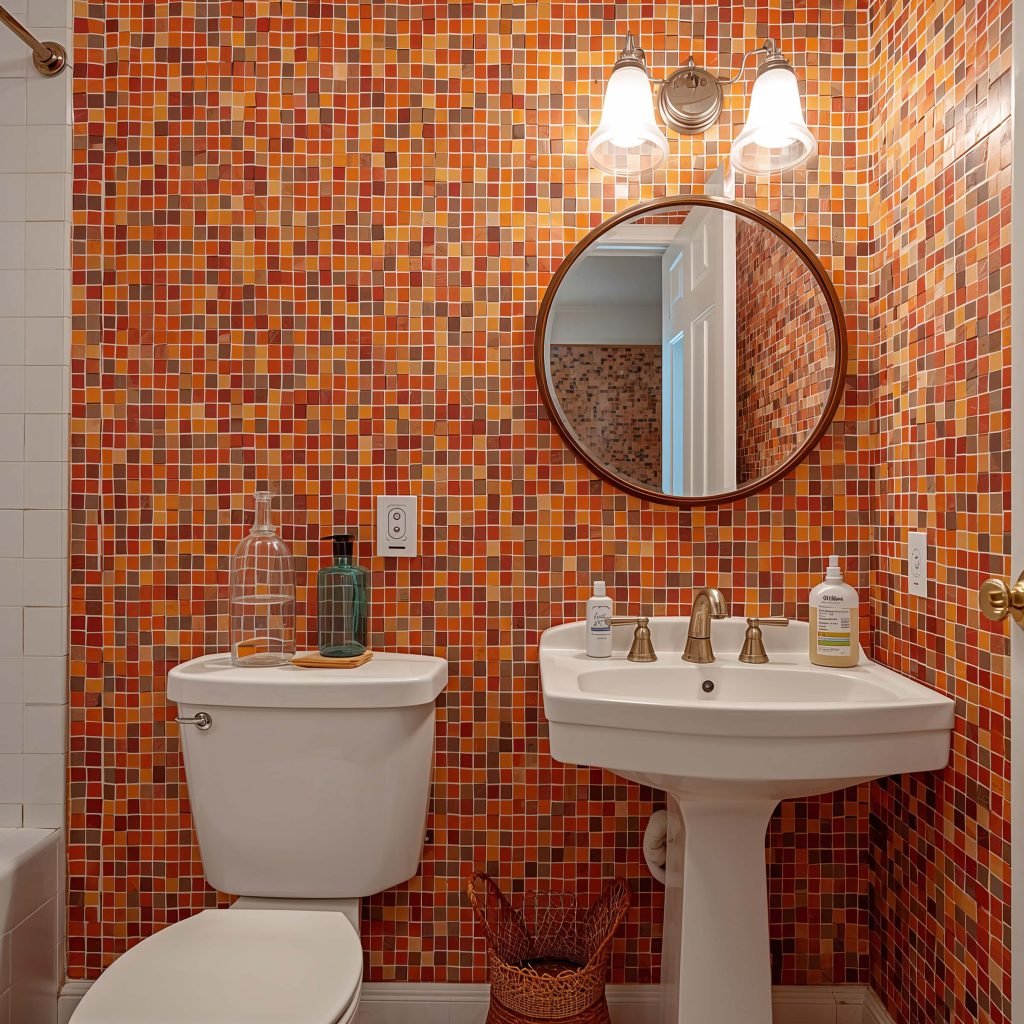 Here’s something people get wrong all the time: small bathrooms need small patterns. Nope! Bold geometric wallpaper actually makes tiny spaces feel intentional and designed, not cramped and sad.
