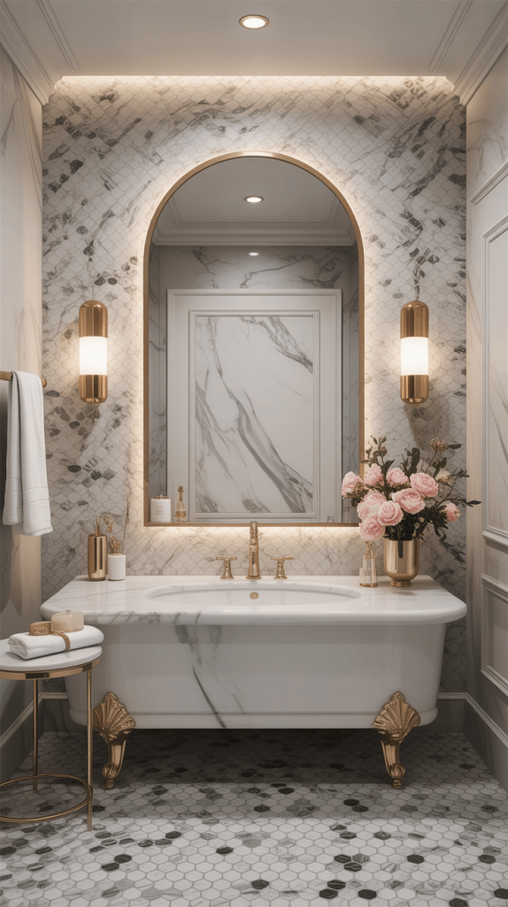 This look feels fresh, modern, and incredibly calming. It’s perfect for a small powder room where you want to make a sweet, memorable impression, or in a master bath to create a genuinely relaxing atmosphere.