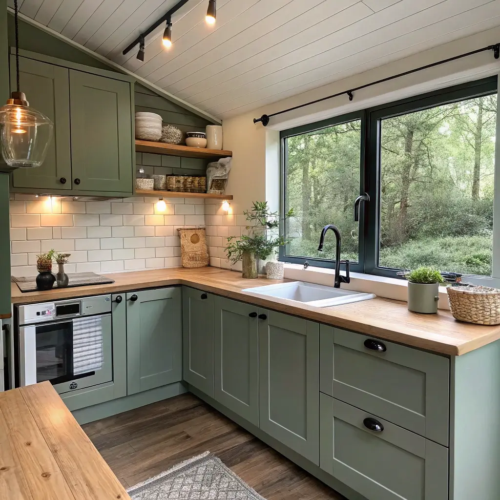 The key lies in going all-in. Paint every cabinet pewter green instead of trying to “lighten” the space with white uppers. This creates a cocoon effect that feels intentional rather than cramped. Add good lighting and reflective surfaces, and watch your small kitchen transform into a jewel box.