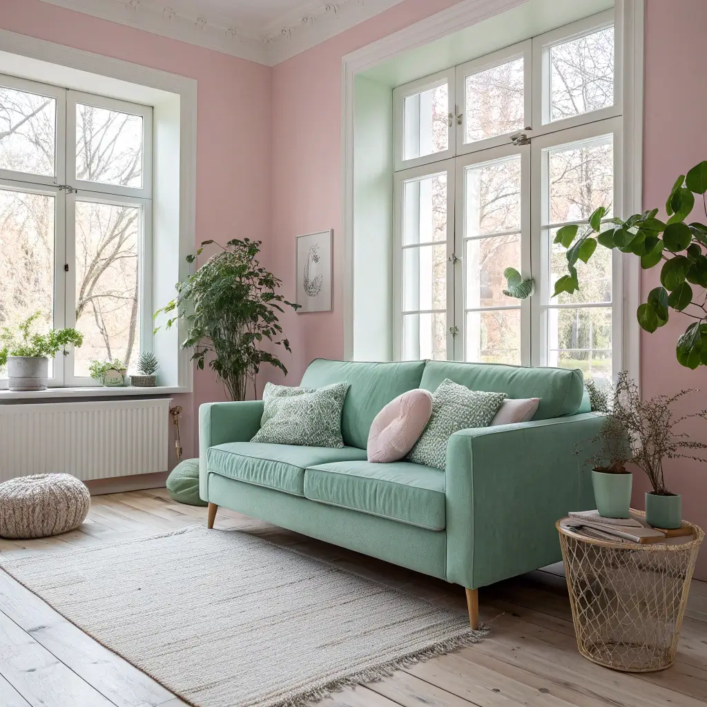 The Scandinavian approach keeps things simple and functional. Choose furniture with clean lines—think a tea green modular sofa with wooden legs. Add coral pink through carefully chosen accessories: a throw here, a cushion there, maybe one statement piece like an accent chair.