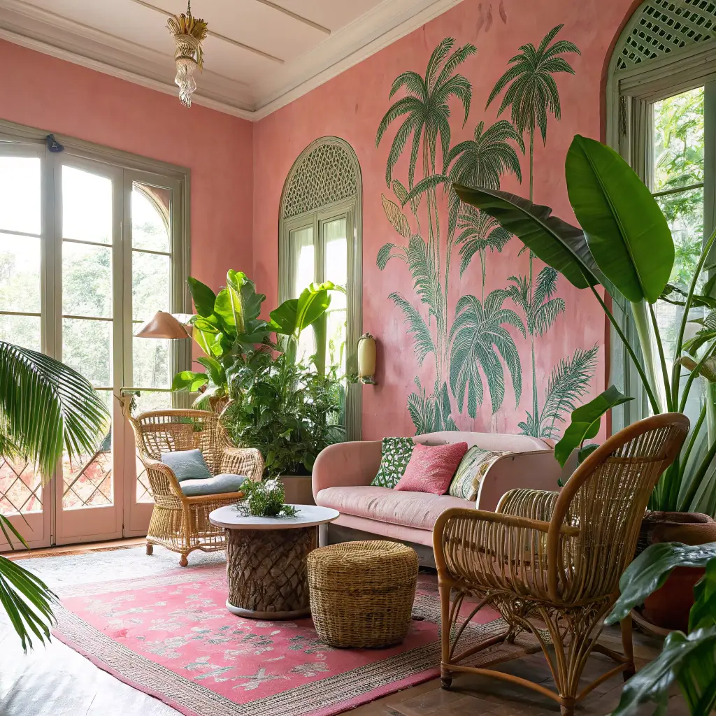 I tried this in my sister’s beach condo, and wow—instant transformation from basic to tropical oasis. We went with a neutral base (white walls, natural rattan furniture) and brought in the pink and green through bold botanical prints, actual tropical plants, and carefully chosen accents.