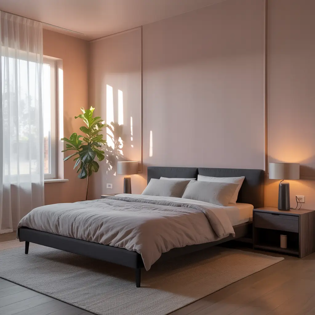 Blush Pink and Charcoal Grey Minimalist Bedroom