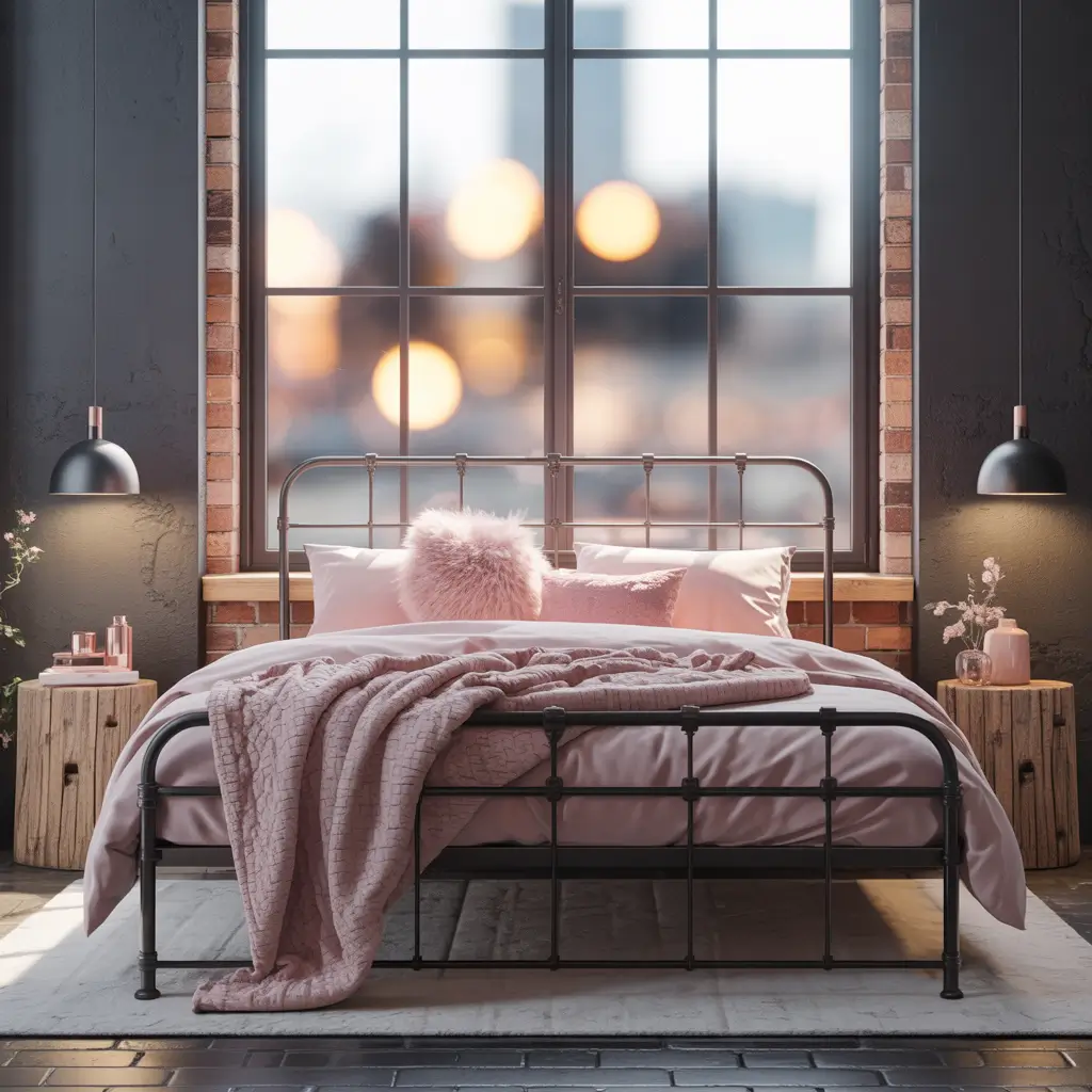 Who says industrial has to be all masculine and cold? Adding pink touches to an industrial grey bedroom creates this unexpected contrast that totally works. Trust me, I was skeptical too until I tried it.