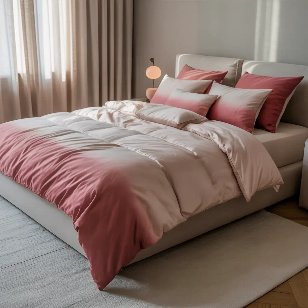 You want bedding that transitions from light pink to deeper rose or even burgundy. The gradient should be smooth, not choppy. I found mine at West Elm, but honestly, Target has some great options too.