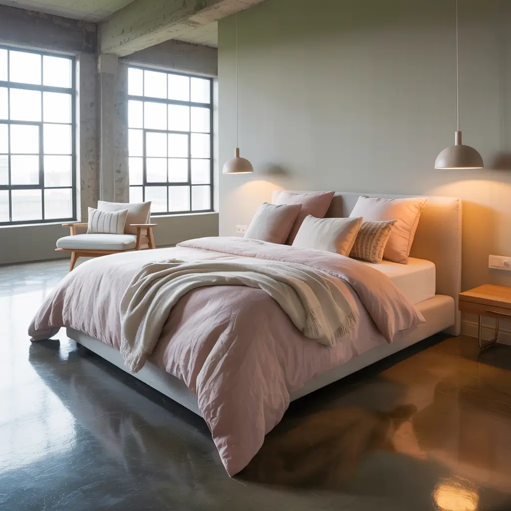 Loft bedrooms offer unique challenges and opportunities. The pink and grey palette works brilliantly in these spaces, especially when you embrace that modern minimalist vibe.