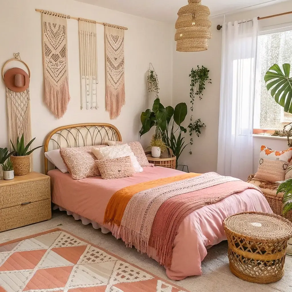 I went full boho in my bedroom last year, and the combination of terracotta orange with dusty pink textiles transformed the space completely. Start with a neutral base – think white or cream walls – then layer in your colors through textiles and accessories.
