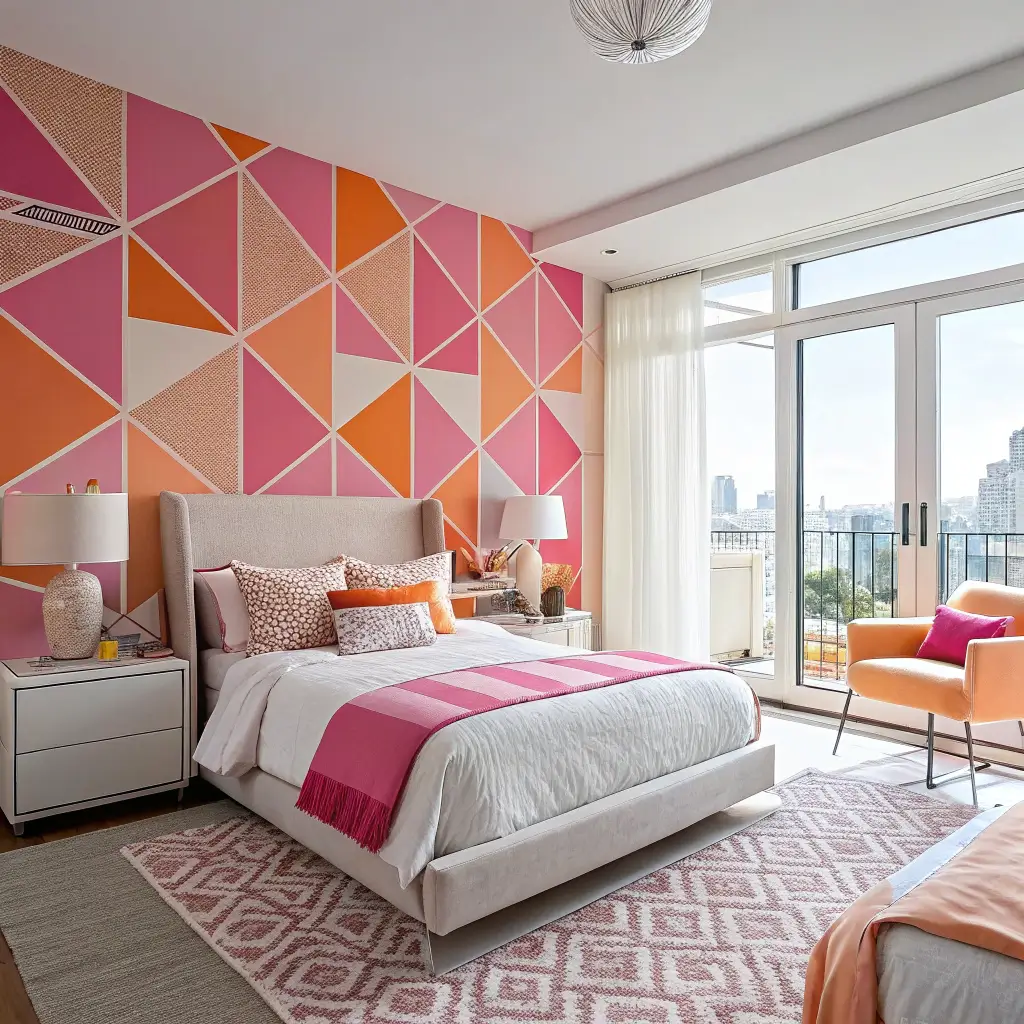 Modern Pink and Orange Geometric Bedroom