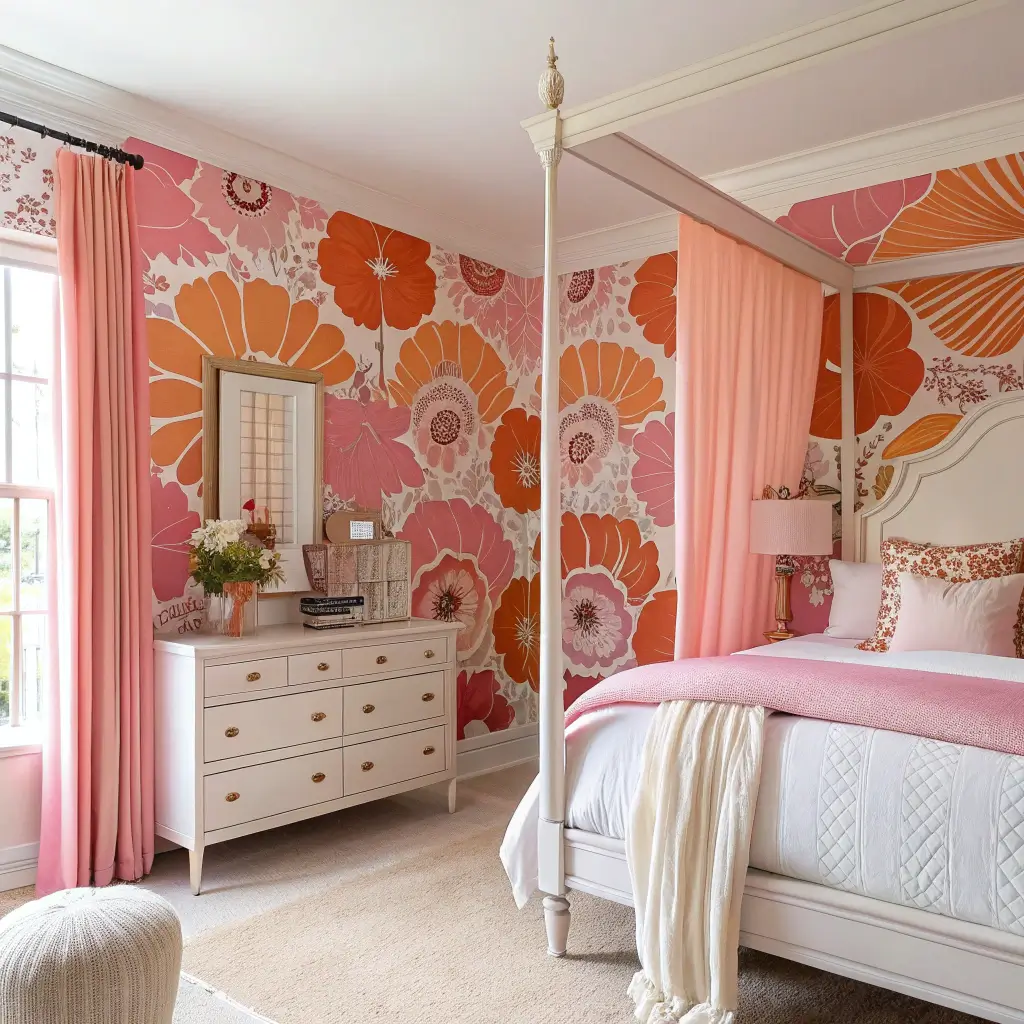 Pink and Orange Floral Statement Bedroom