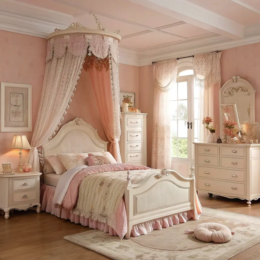 Elegant Pink and Peach Vintage Bedroom