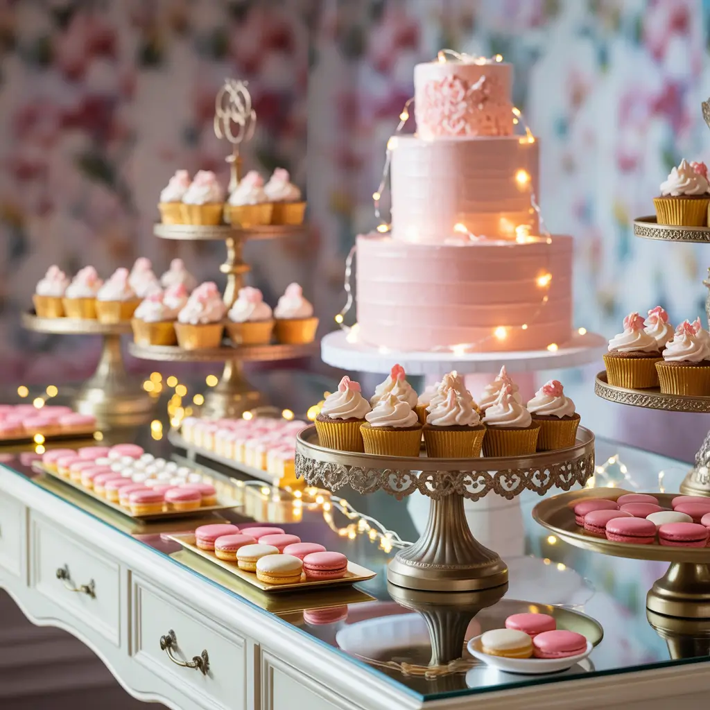 Ever notice how the best dessert tables always have something unexpected? Try adding some white chocolate-dipped strawberries or pink macarons. They’re not just delicious – they’re basically edible decorations that tie your whole theme together.