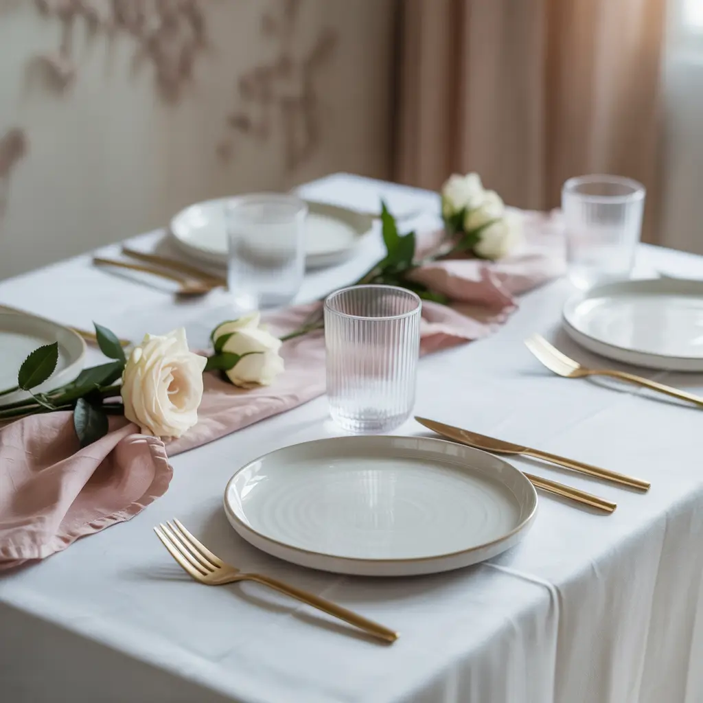 One small detail that makes a huge difference: Use different textures within your color palette. Maybe linen napkins instead of paper, or add a subtle pink charger plate under your white dinner plates. These little touches elevate the whole look without breaking your minimalist vibe.