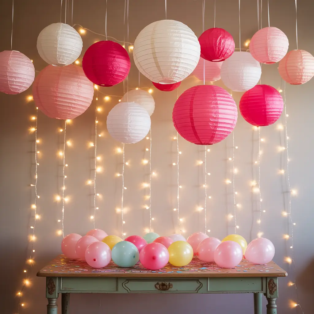 I love paper lanterns because they create this soft, diffused lighting that’s incredibly flattering for photos. When you make them in pink and white, they add color and texture without being overwhelming. Plus, there’s something satisfying about creating your own party decor.