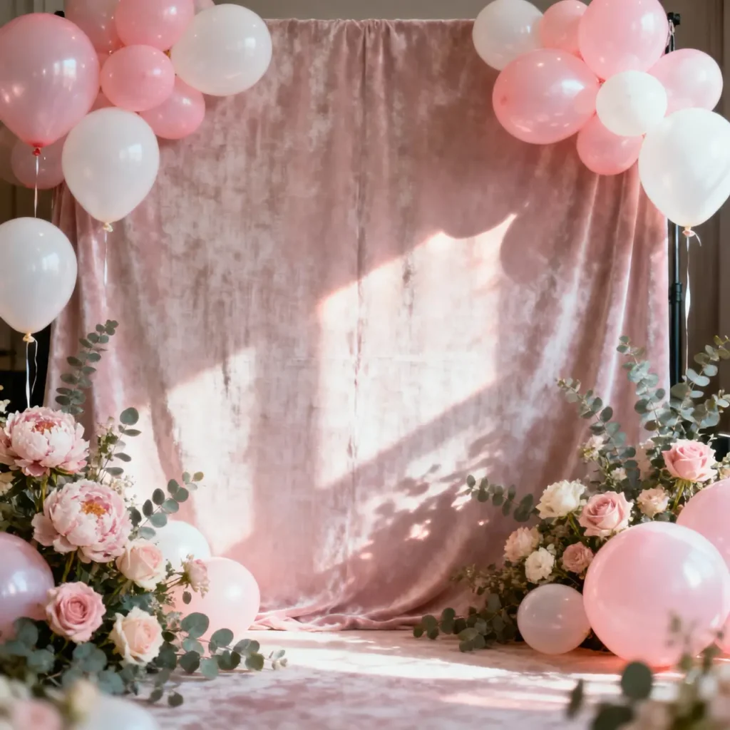 The backdrop is where you can really go all out. Think layered fabric in different shades of pink and white, maybe some artificial flowers, or even a simple but elegant balloon wall. The goal is creating something that looks amazing in photos but doesn’t compete with your guests for attention.
