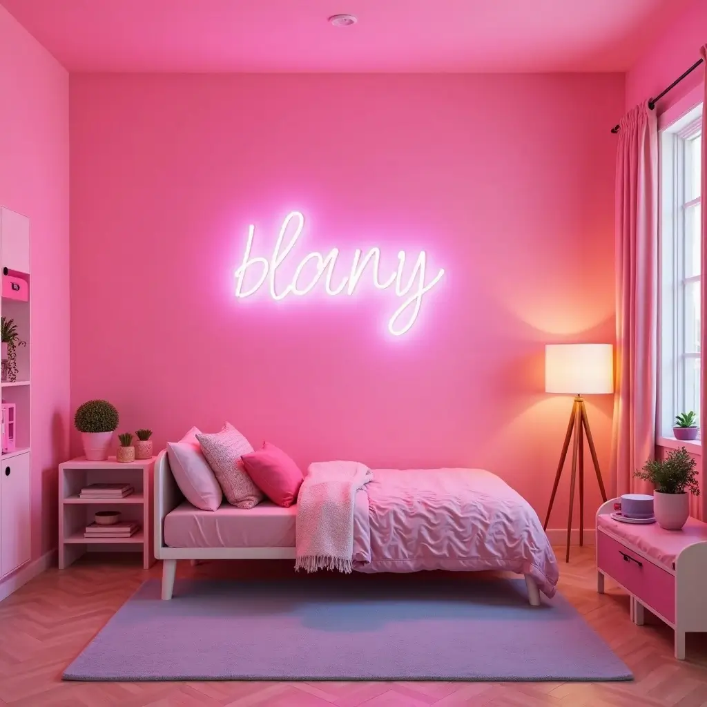 Pink Bedroom with Neon Light Accents