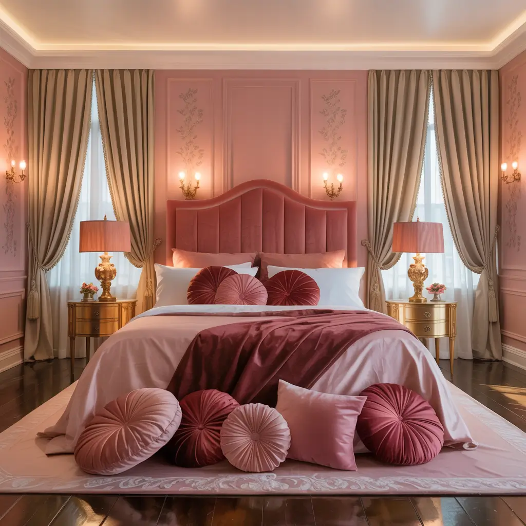 Elegant Pink Bedroom with Velvet Touches