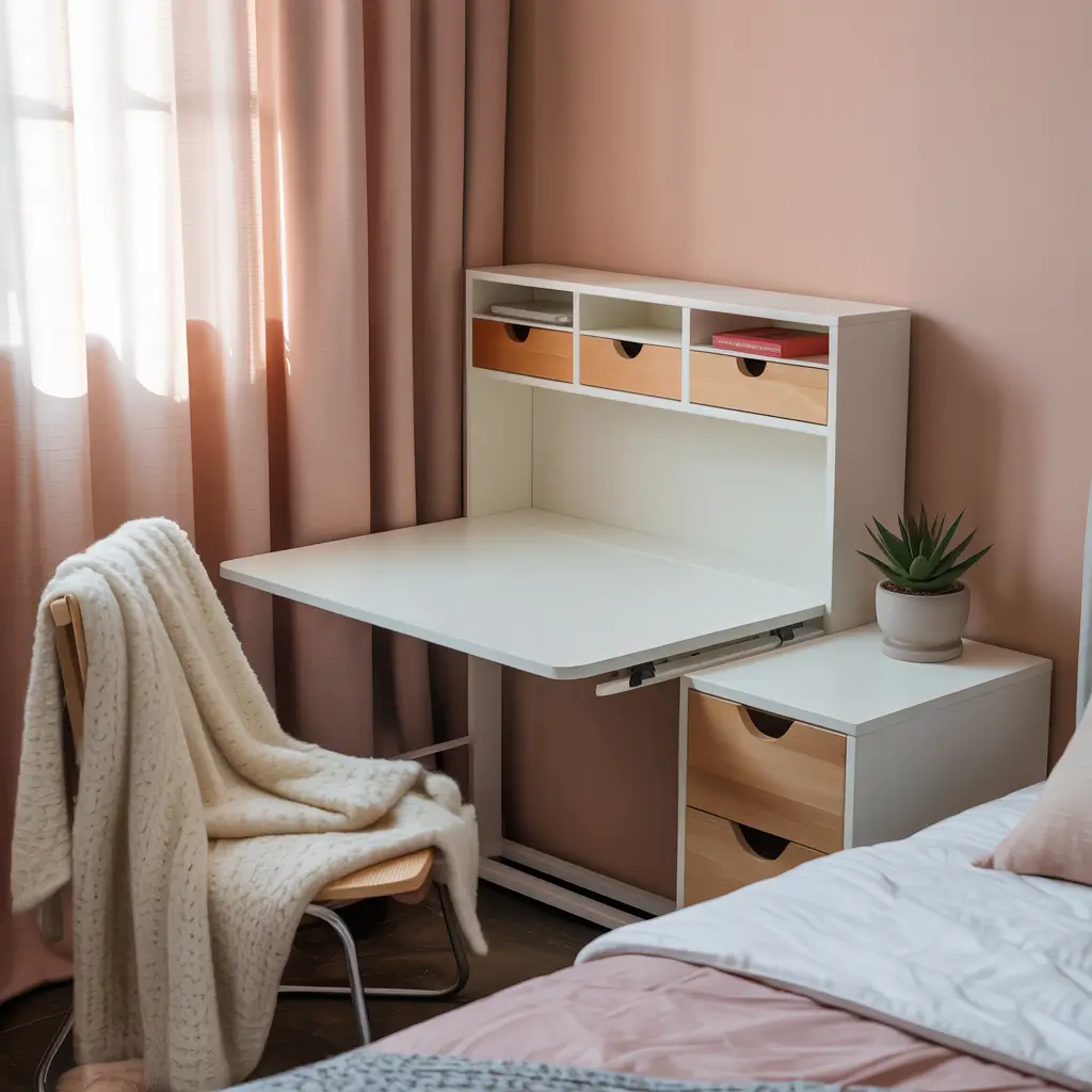 Small Pink Bedroom Space-Saving Ideas