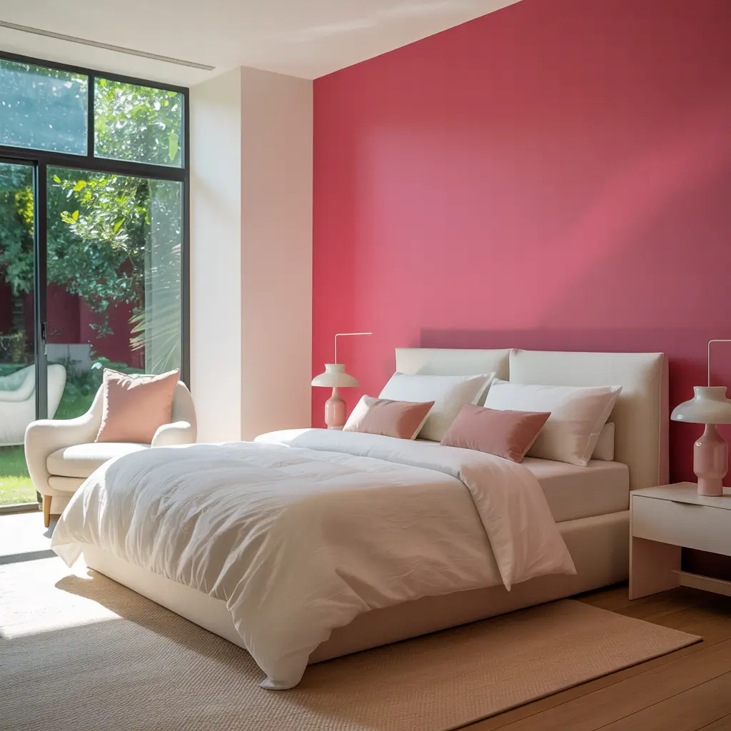 Here’s what most people get wrong: they paint the wall hot pink and stop there. Nope! You need to balance that intensity with neutral everything else. White bedding, natural wood furniture, maybe some black accents for sophistication. The hot pink should be the star, not part of an ensemble cast.