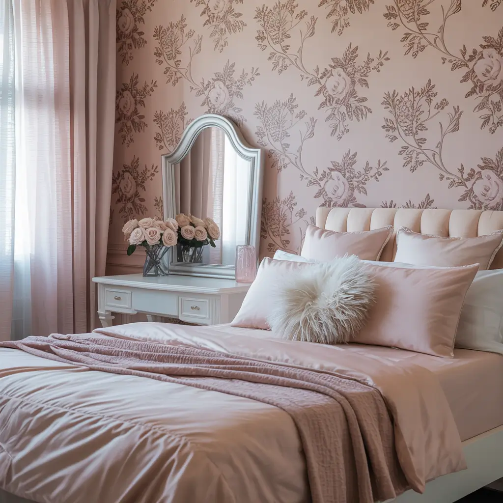 Pink Floral Wallpaper Bedroom