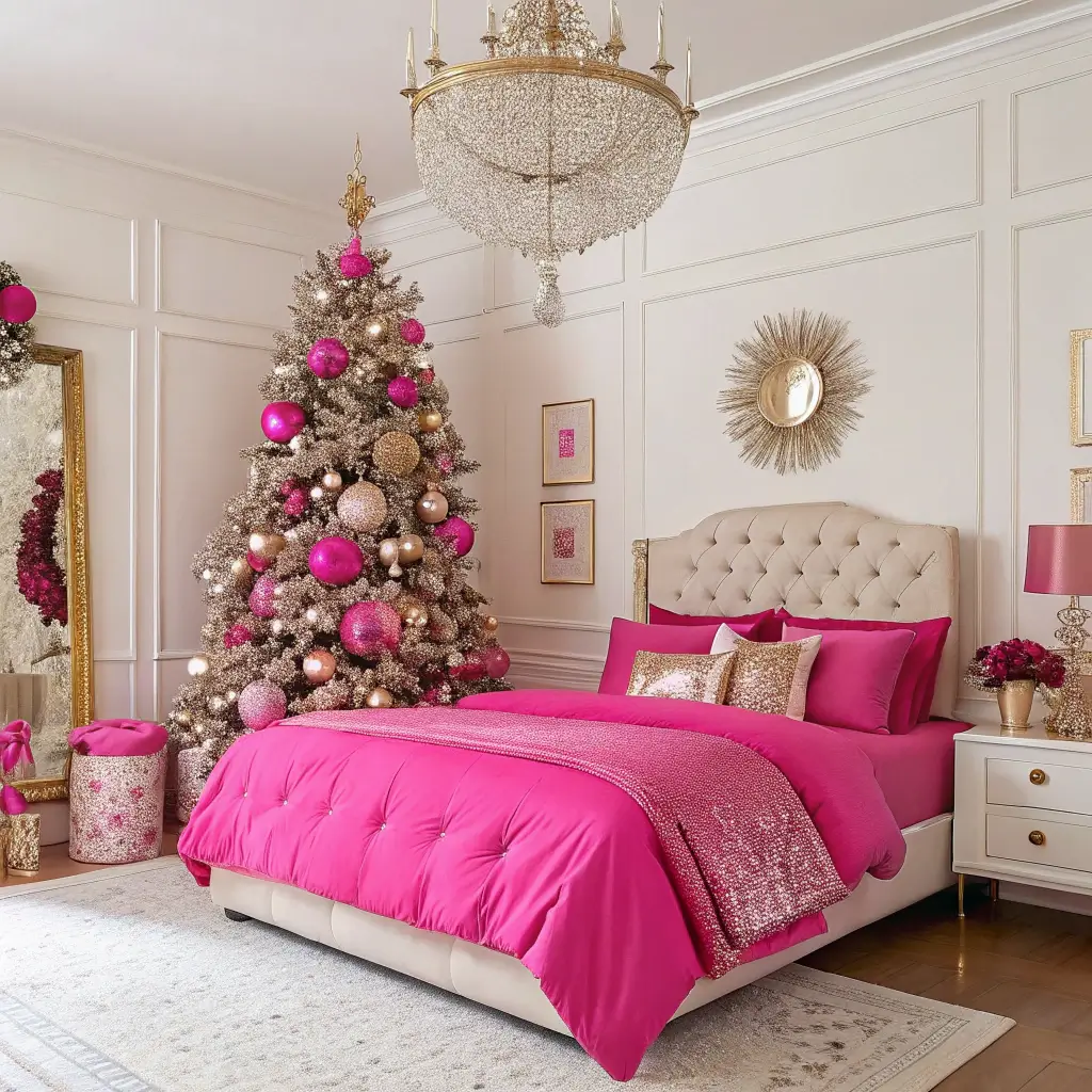 Hot Pink Glam Holiday Bedroom Decor