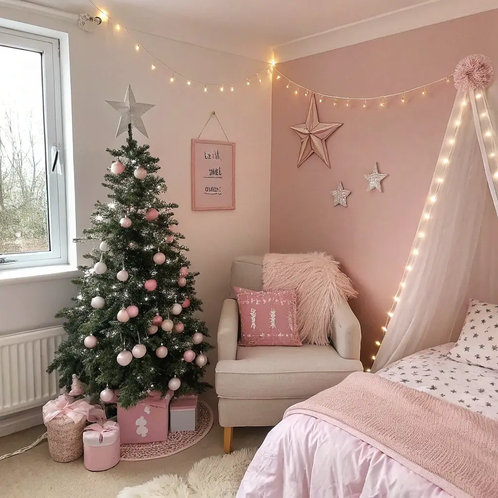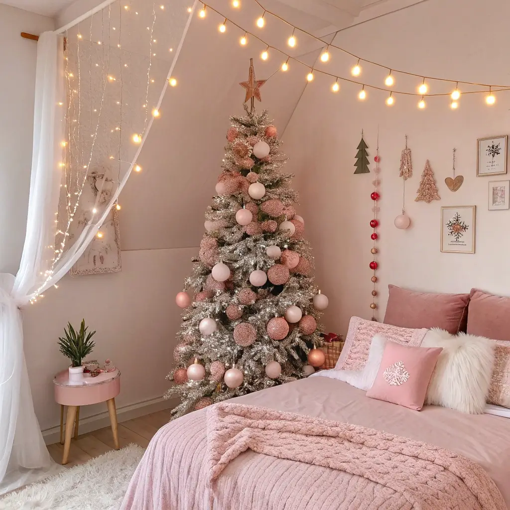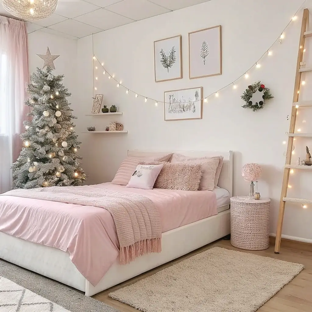 Soft Pink DIY Christmas Bedroom Decor