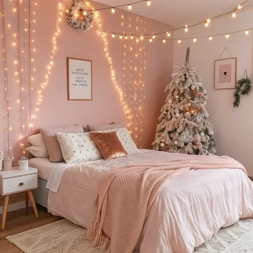 Light Pink Fairy Lights Christmas Bedroom