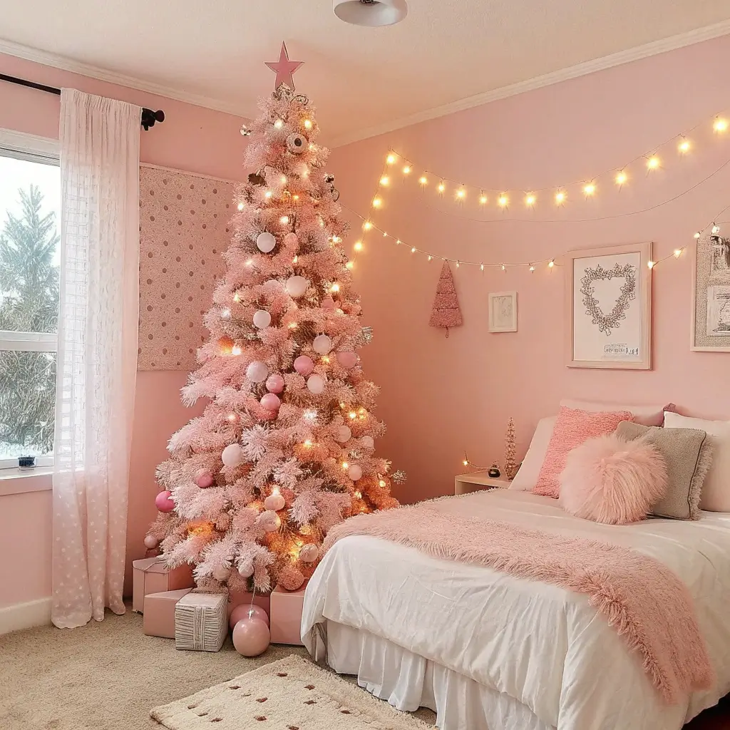 Pink Christmas Tree in the Bedroom