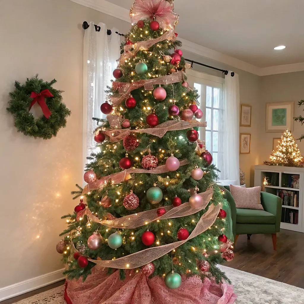 Pink, Red, and Green Christmas Tree Decor