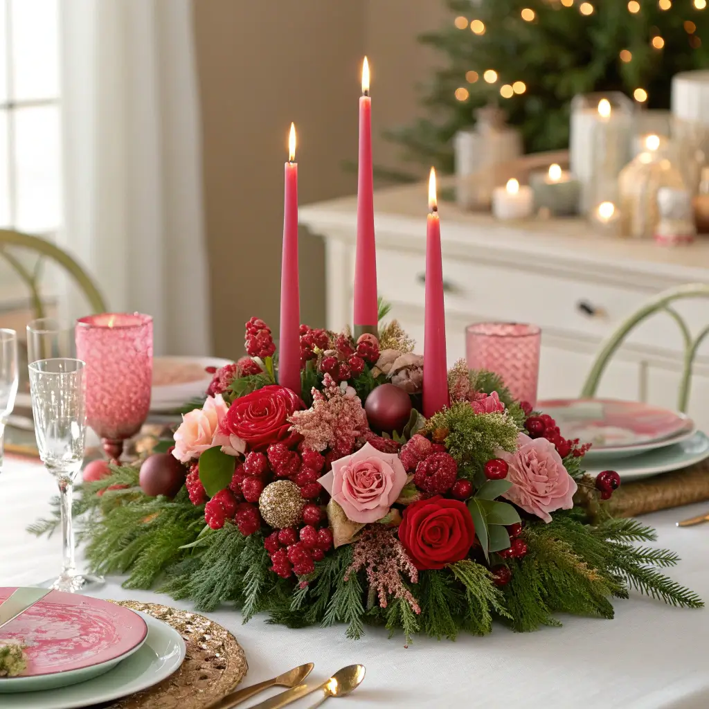 Festive Centerpieces in Pink, Red, and Green