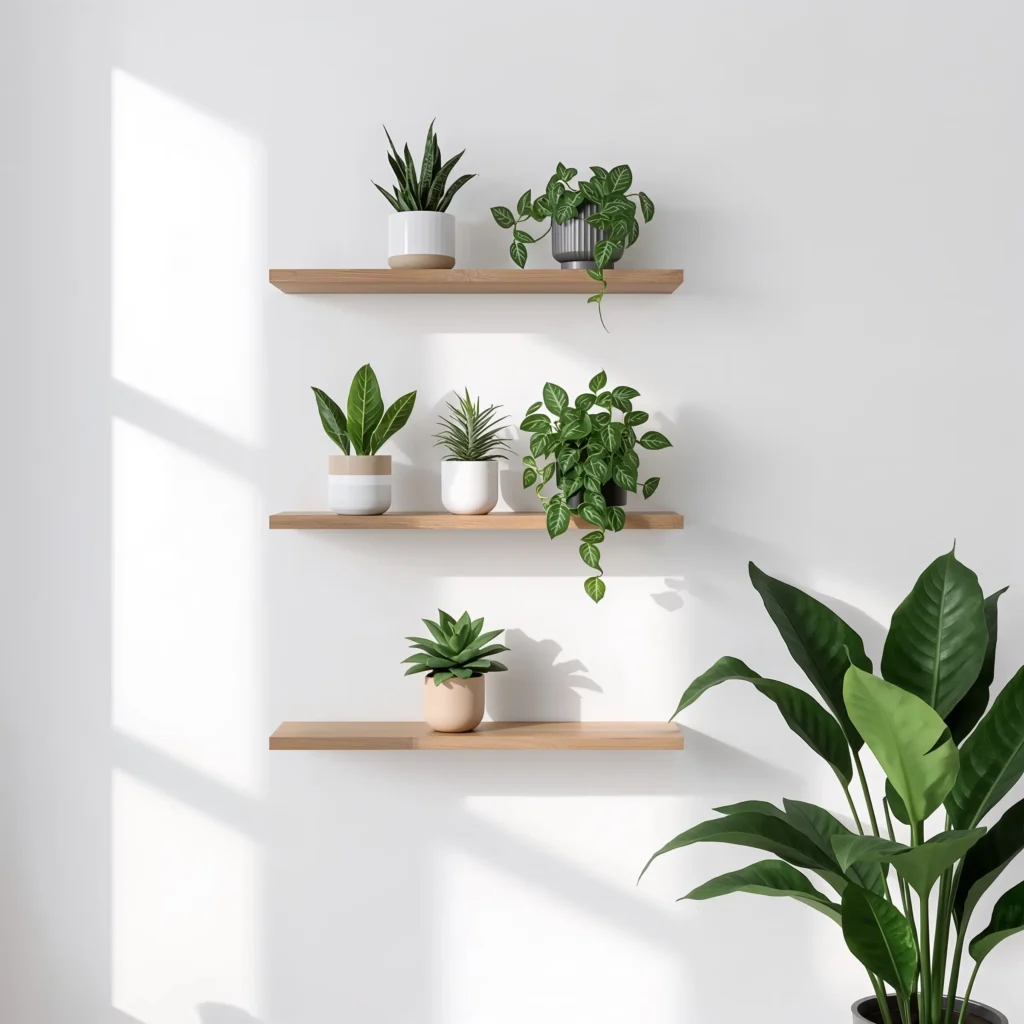 Choose shelves in materials that complement your existing decor. Natural wood brings warmth, while white or black floating shelves create that crisp, modern gallery feel. The plants become living art pieces rather than just greenery.