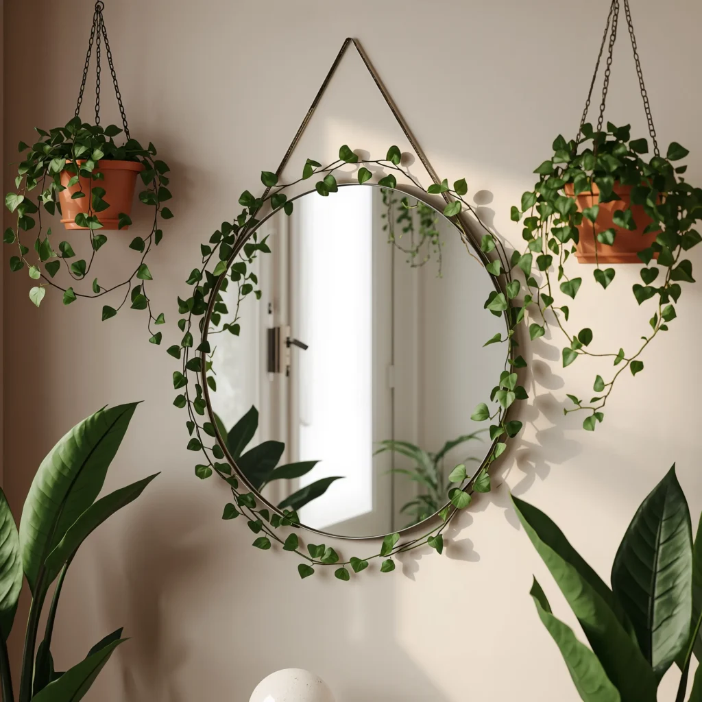 I’ve experimented with different mirror shapes and sizes, and the variety creates more visual interest than uniform mirrors. Round mirrors soften angular plant containers, while rectangular mirrors complement geometric planters beautifully.