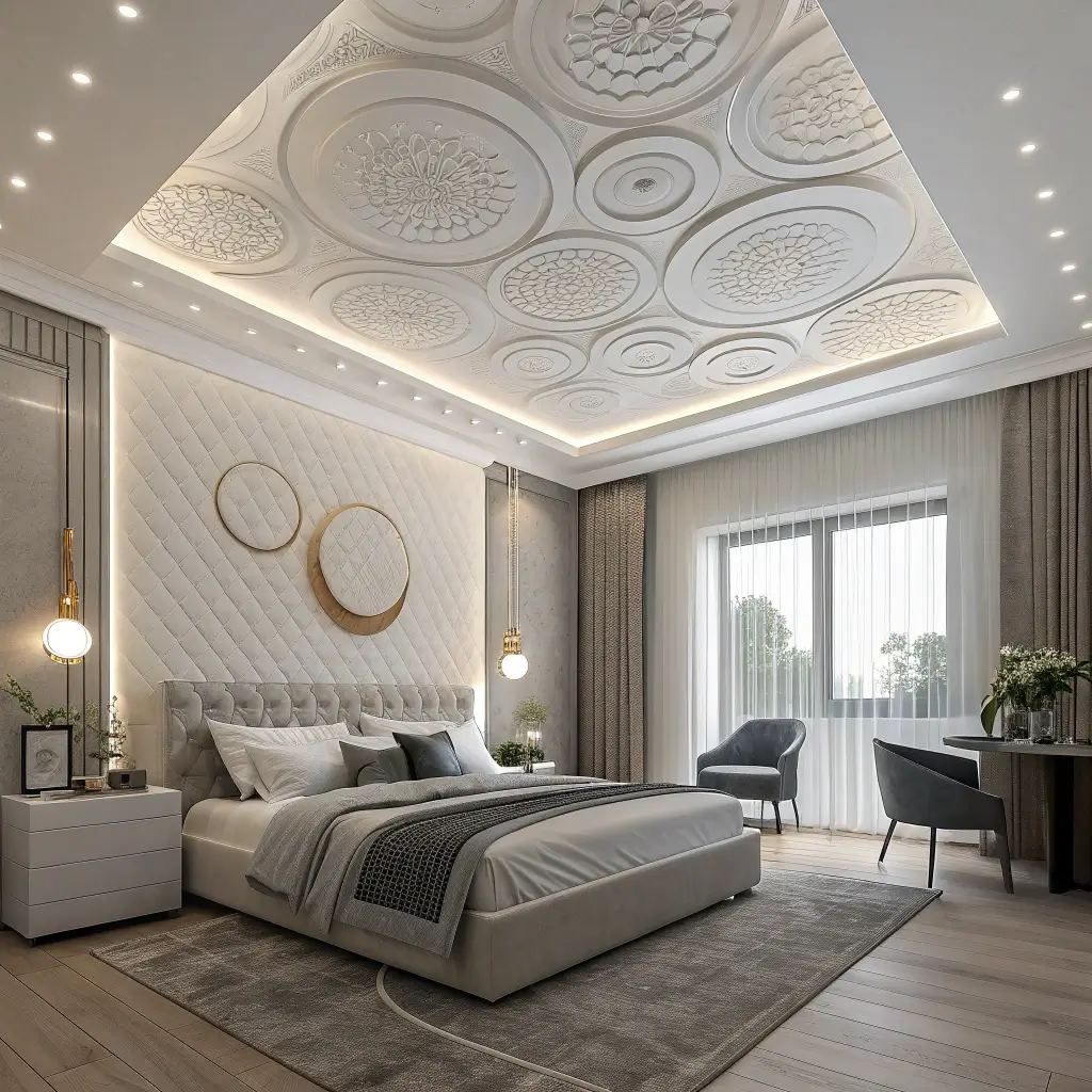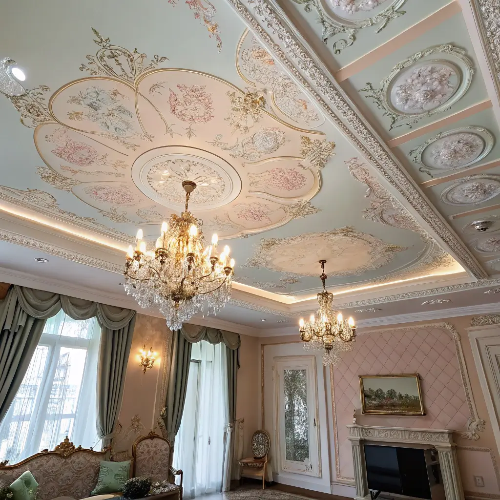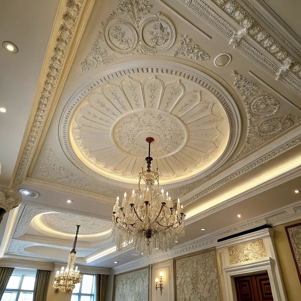 These designs feature roses, vines, leaves, and other botanical elements sculpted directly into the plaster. The level of detail can range from subtle relief work to full-blown 3D flowers that look ready to bloom. What fascinates me most is how these traditional designs are making a comeback in contemporary homes โ pair them with modern furniture, and suddenly you’ve got this amazing juxtaposition that screams sophistication.