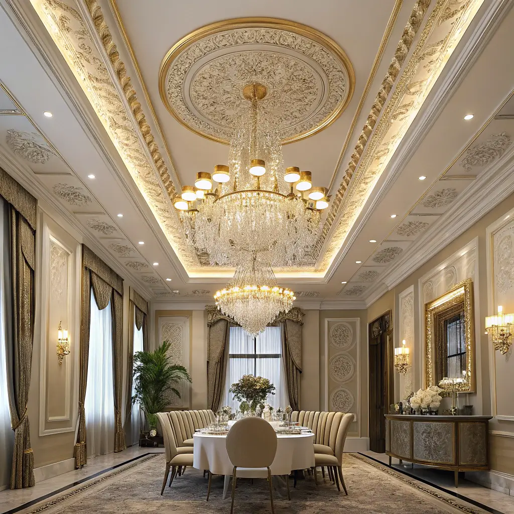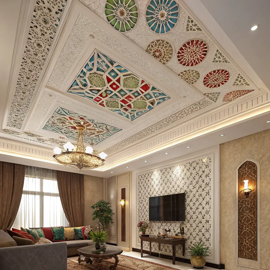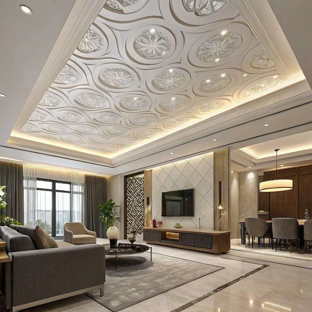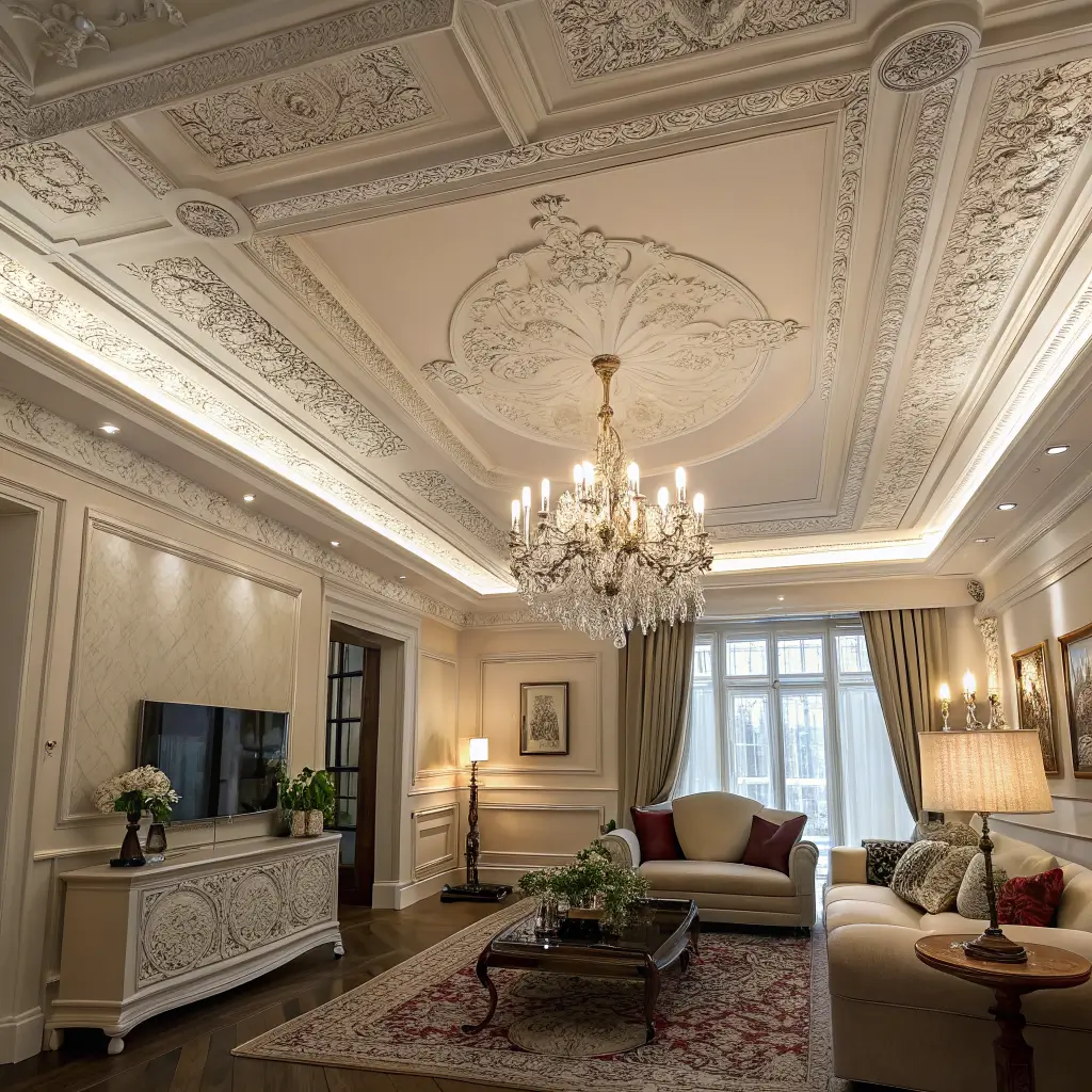 These designs feature roses, vines, leaves, and other botanical elements sculpted directly into the plaster. The level of detail can range from subtle relief work to full-blown 3D flowers that look ready to bloom. What fascinates me most is how these traditional designs are making a comeback in contemporary homes โ pair them with modern furniture, and suddenly you’ve got this amazing juxtaposition that screams sophistication.