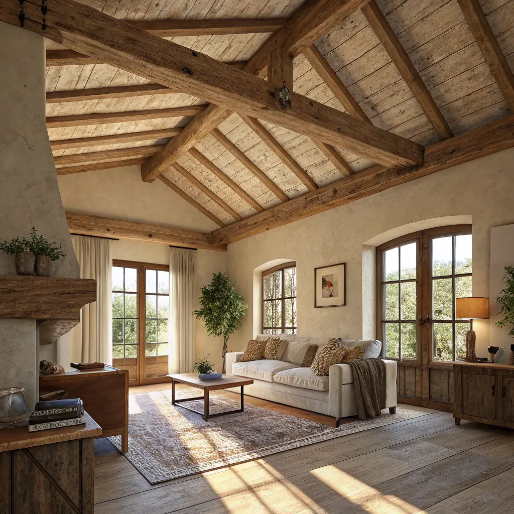 Who says you have to choose between wood and plaster? Rustic wooden-plaster fusion ceilings give you the best of both worlds, combining warm wood beams with smooth plaster surfaces.
