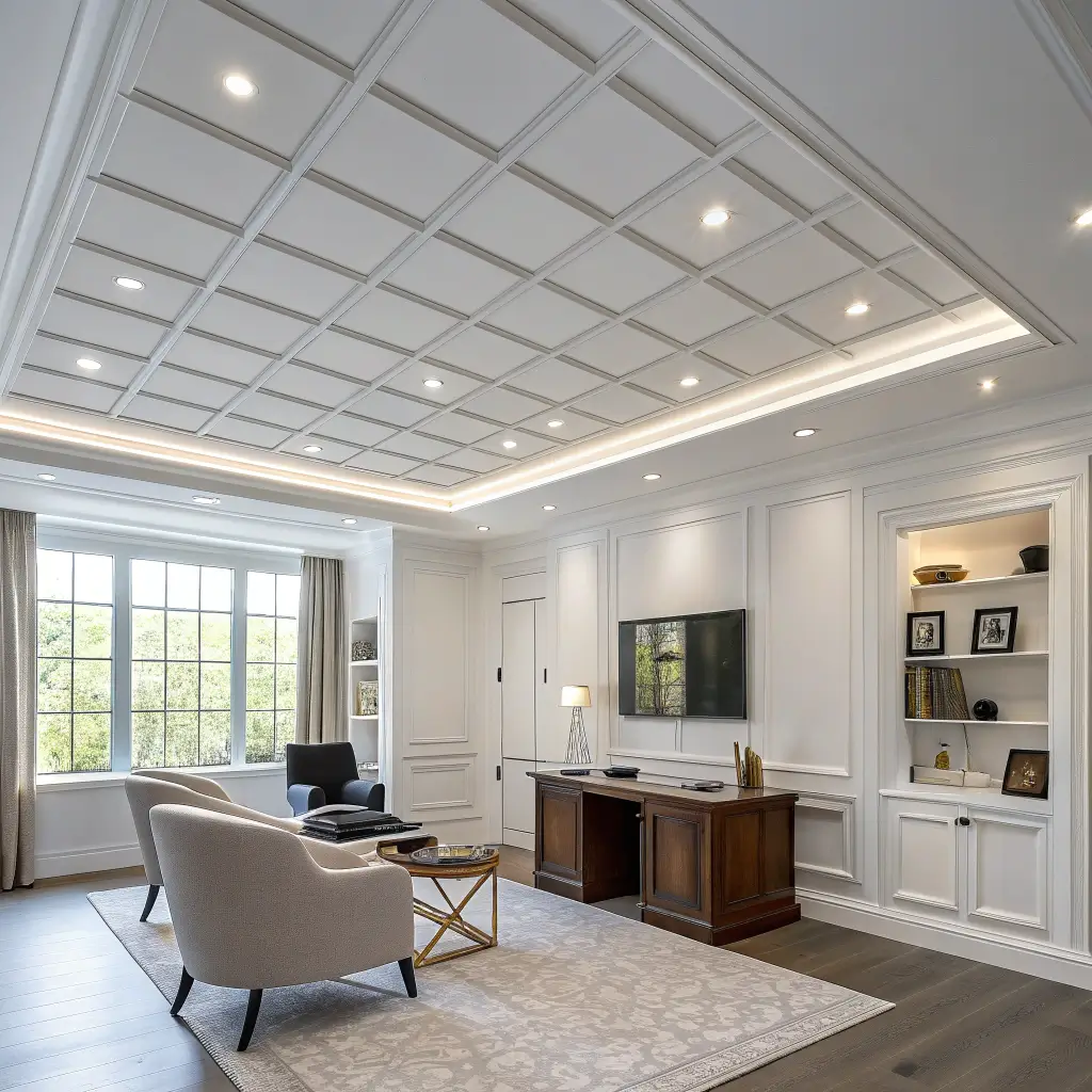 These ceilings typically feature smooth, flat surfaces with hidden LED strips or recessed lighting that creates a floating effect. The magic happens in the gaps and levels. By dropping certain sections or creating subtle layers, you achieve depth without complexity. It’s like the ceiling equivalent of a white t-shirt and jeans โ simple, but when done right, absolutely perfect.