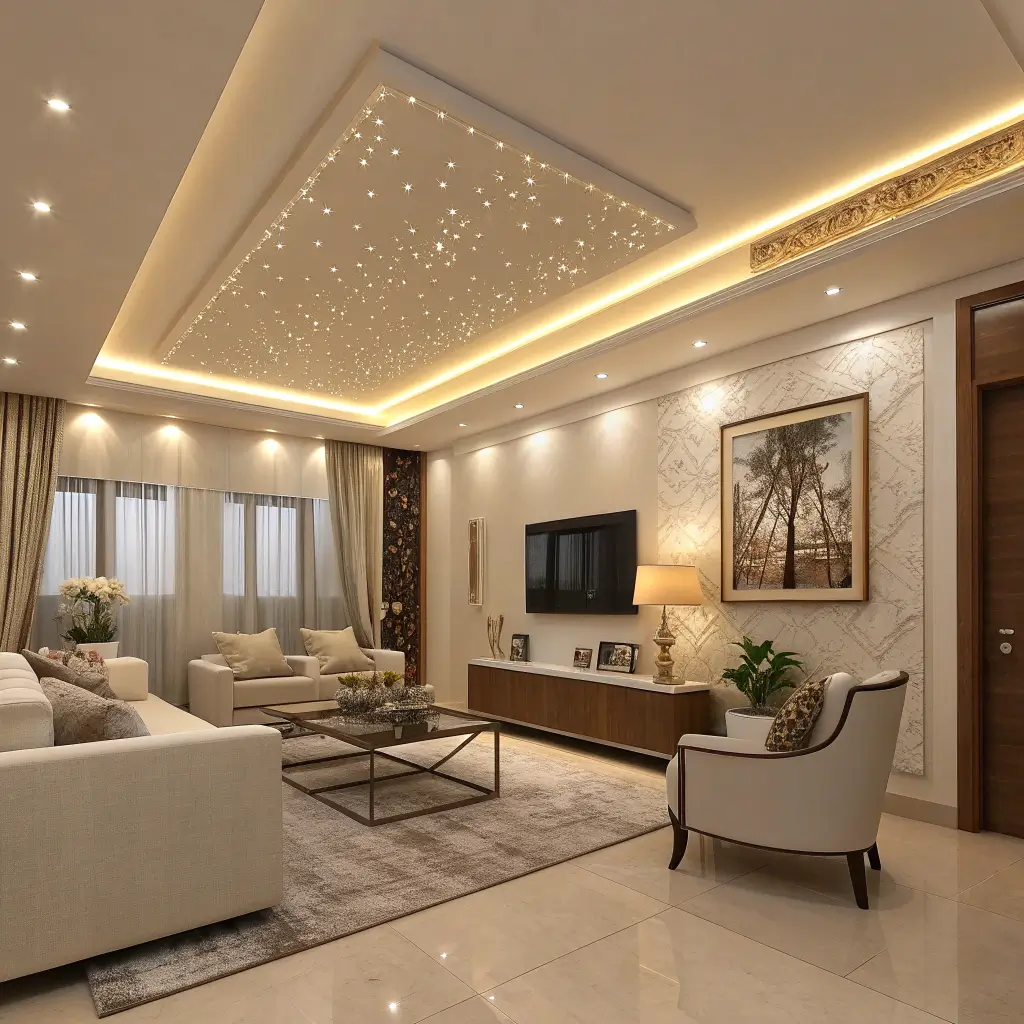 I recently helped my best friend design her studio apartment, and we went with a simple rectangular POP ceiling with hidden LED strips around the perimeter. The result? Her tiny 400-square-foot space suddenly felt like a luxury loft. The minimalist design creates this amazing illusion of height and space that you wouldn’t believe until you see it yourself.
