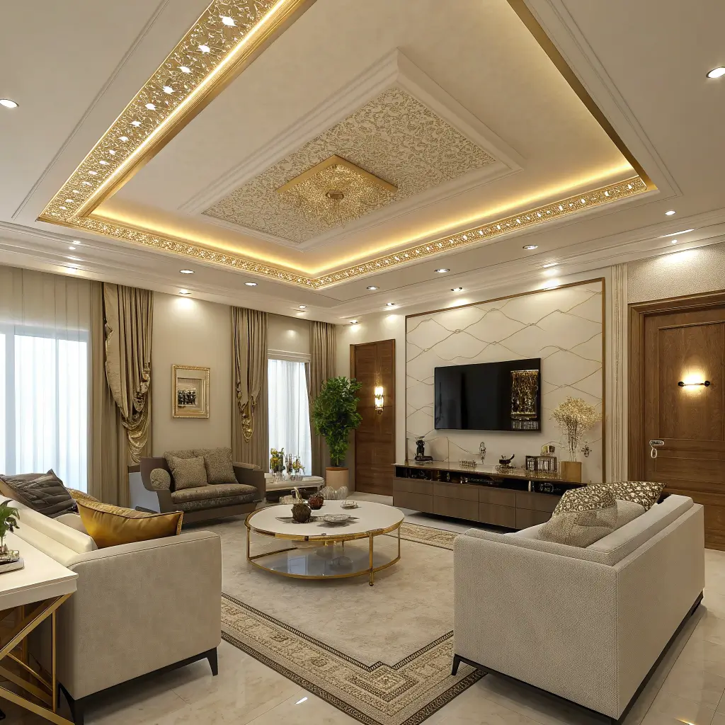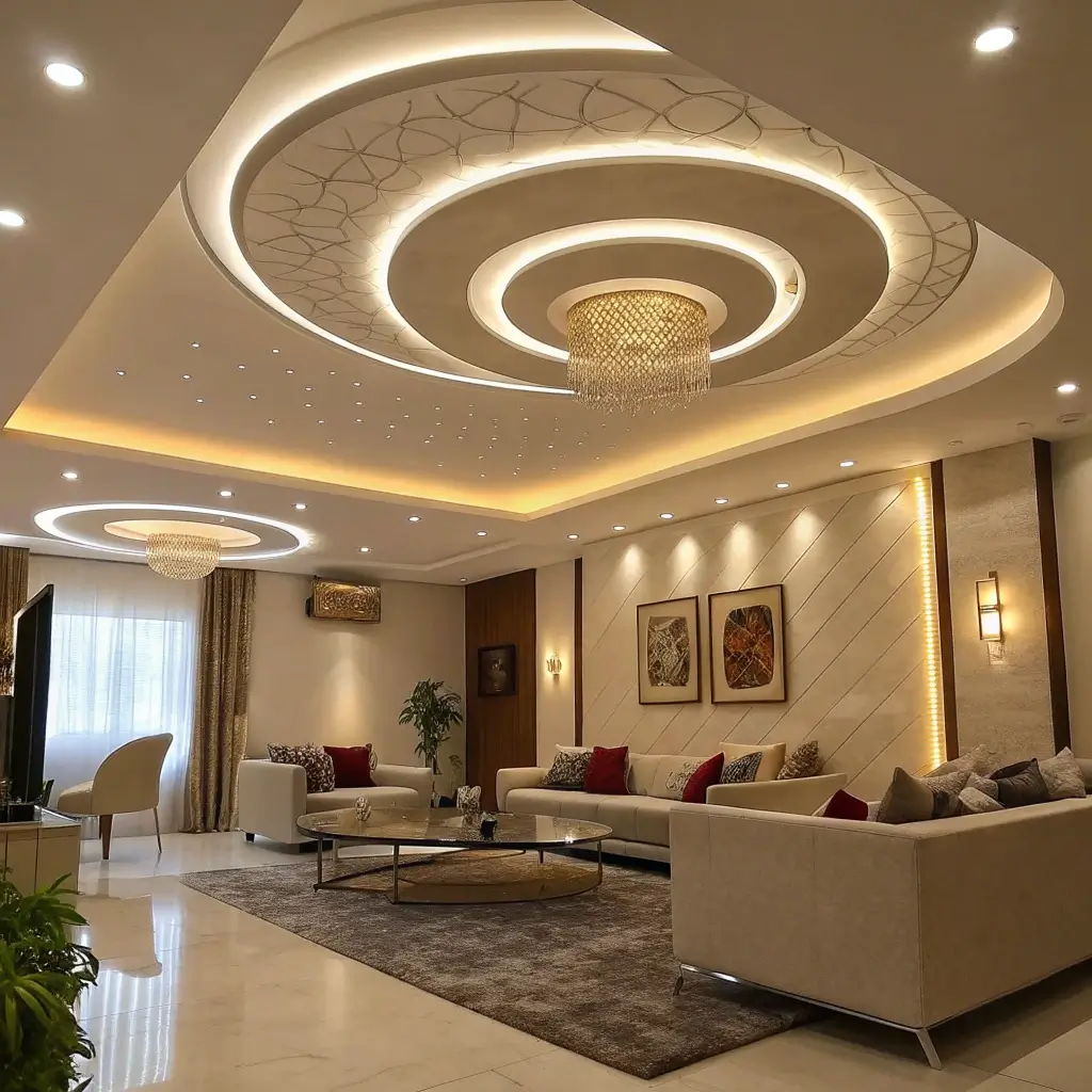 Circles have this amazing ability to soften any space. Ever notice how rectangular rooms feel more welcoming with circular elements? Circular layered POP ceilings create depth and movement that draws the eye upward and makes rooms feel larger and more dynamic.