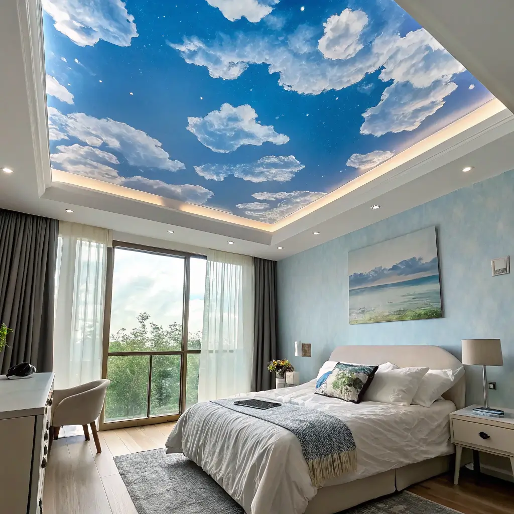 Ever wished you could bring the outdoors inside? Well, POP ceilings with painted murals make it possible. Whether it’s fluffy clouds, sunset gradients, or even detailed landscapes, these artistic ceilings transform rooms into immersive experiences.