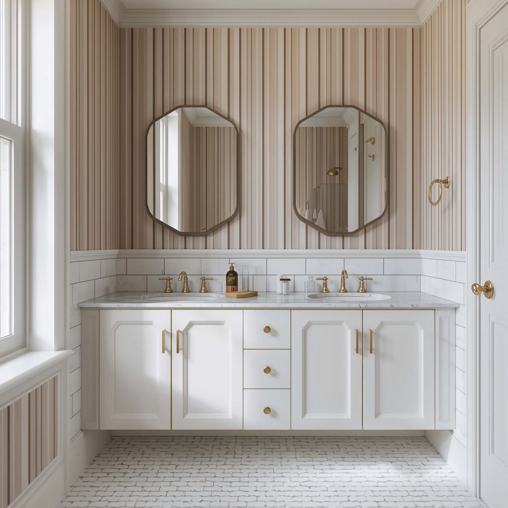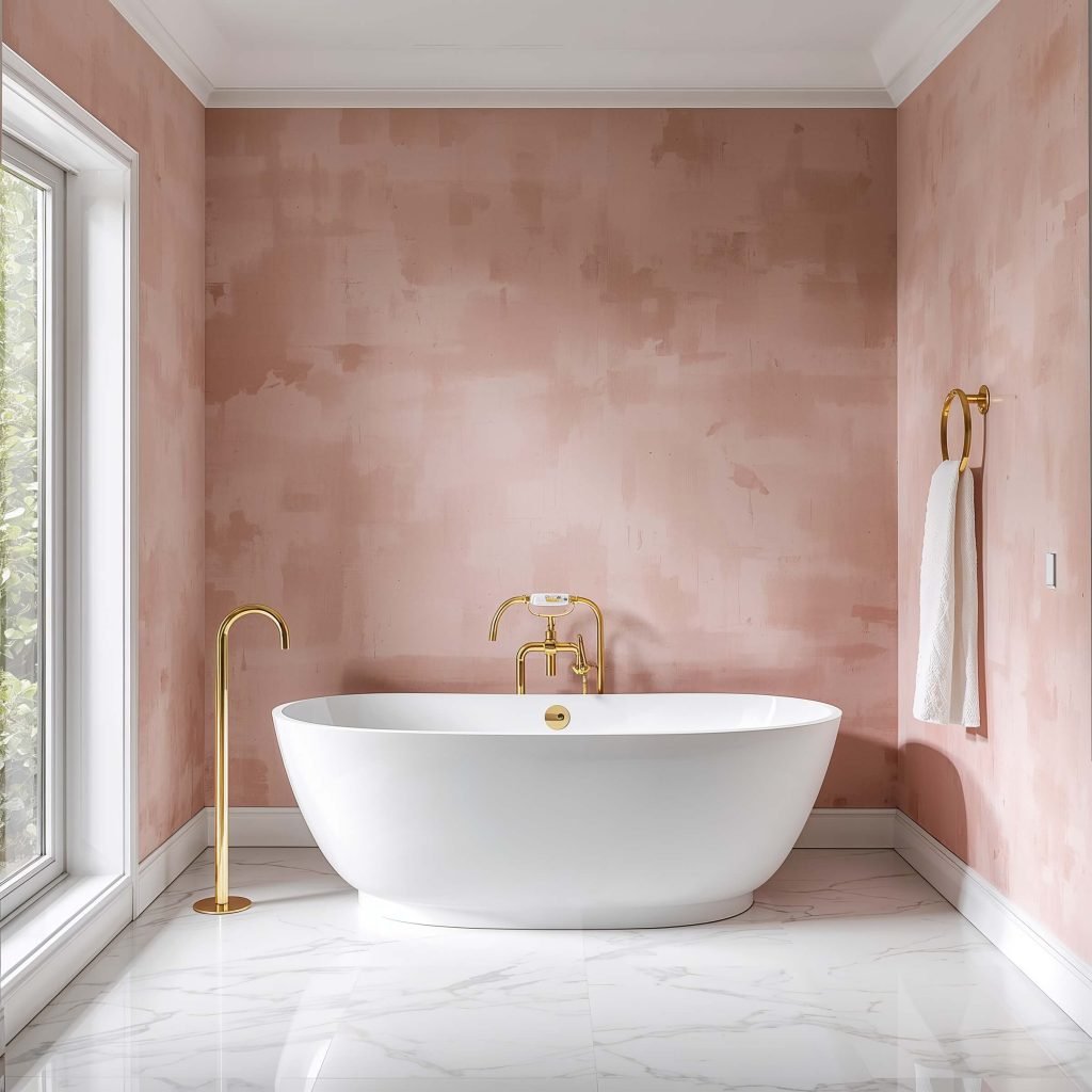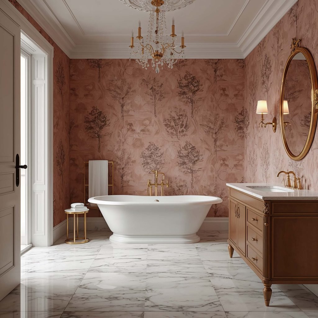 I installed a dusty rose wallpaper with subtle gold veining in my sister’s powder room last year, and now everyone wants to use her bathroom specifically. The soft pink creates this warm, flattering glow that makes everyone look amazing in the mirror. Coincidence? I think not.