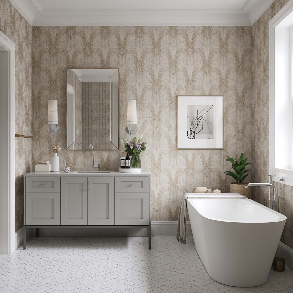 My personal bathroom features white marble wallpaper with gray veining, and it cost me less than a fancy dinner for two. The effect? Priceless. Everyone thinks I splurged on real marble, and I’m not correcting them.