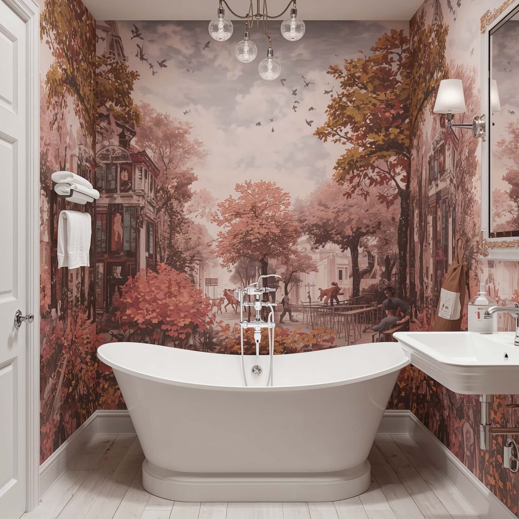 Why settle for patterns when you can have art on your walls? Mural wallpapers transform powder rooms into galleries. I’ve seen everything from abstract expressionism to photorealistic landscapes, and they all make stunning statements.