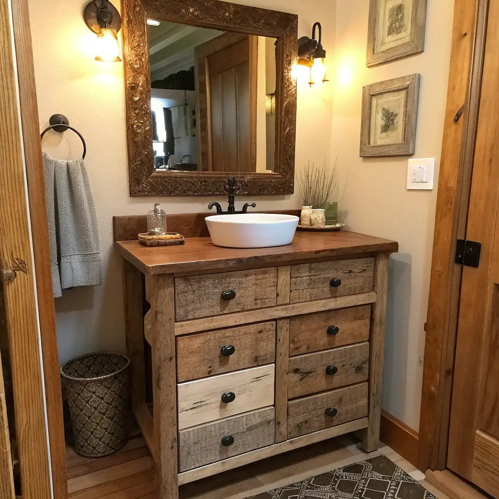 2. Rustic Wooden Vanity with Storage