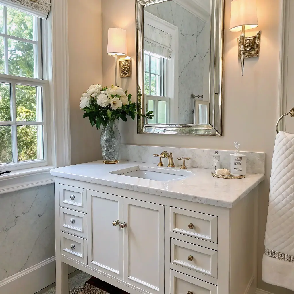 Okay, let’s talk marble. Yes, it’s a bit of an investment, but hear me out. A marble countertop instantly elevates any vanity from basic to breathtaking. And in a powder room, you’re dealing with such a small surface area that even genuine marble won’t destroy your budget.