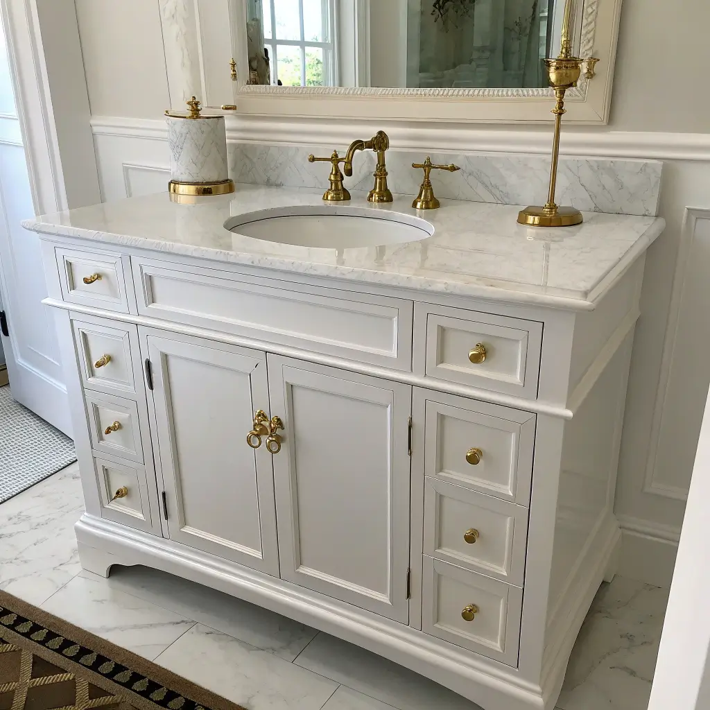 14. Classic White Vanity with Brass Hardware