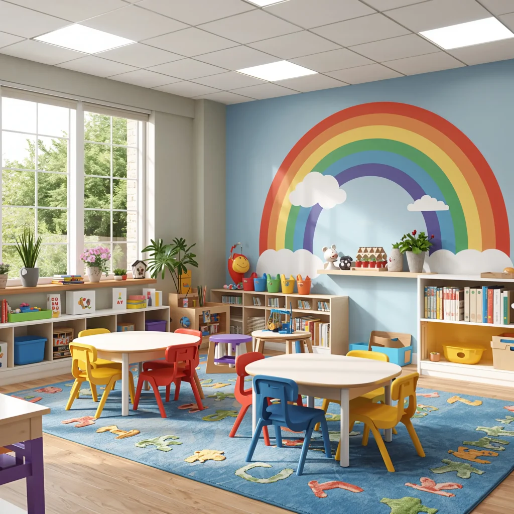 The truth is, kids don’t need perfect decorations – they need thoughtful spaces that support their learning and make them feel valued. Every rainbow corner, nature mural, and reading nook sends a message: “This is your space, you belong here, and learning is an adventure.”