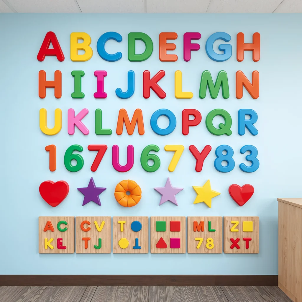Forget those boring alphabet strips that sit above the whiteboard collecting dust. An interactive alphabet and number wall turns passive decoration into active learning. Think of it as a playground for letters and numbers.