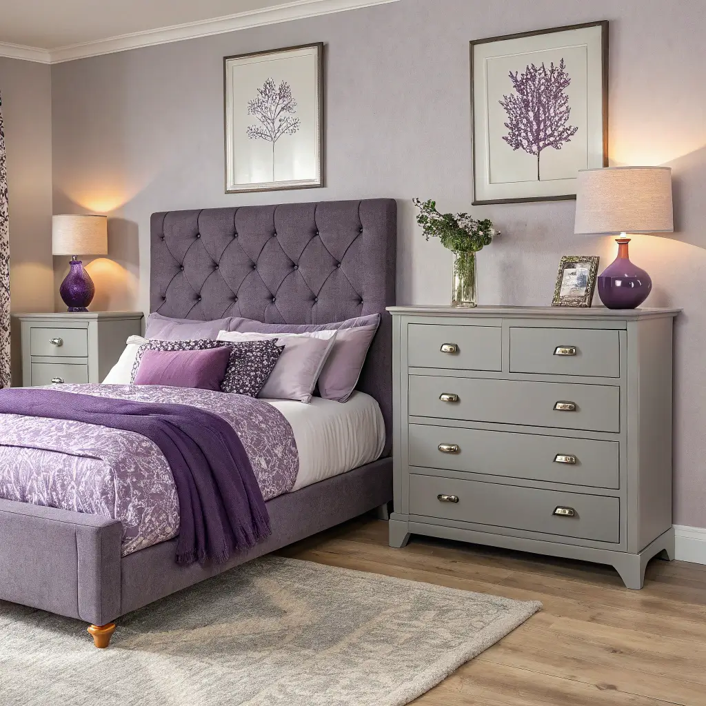 Furniture sets the foundation for your entire bedroom design. The right pieces in purple and grey can transform a basic room into a style statement. But here’s the thing – you don’t need matching sets anymore.