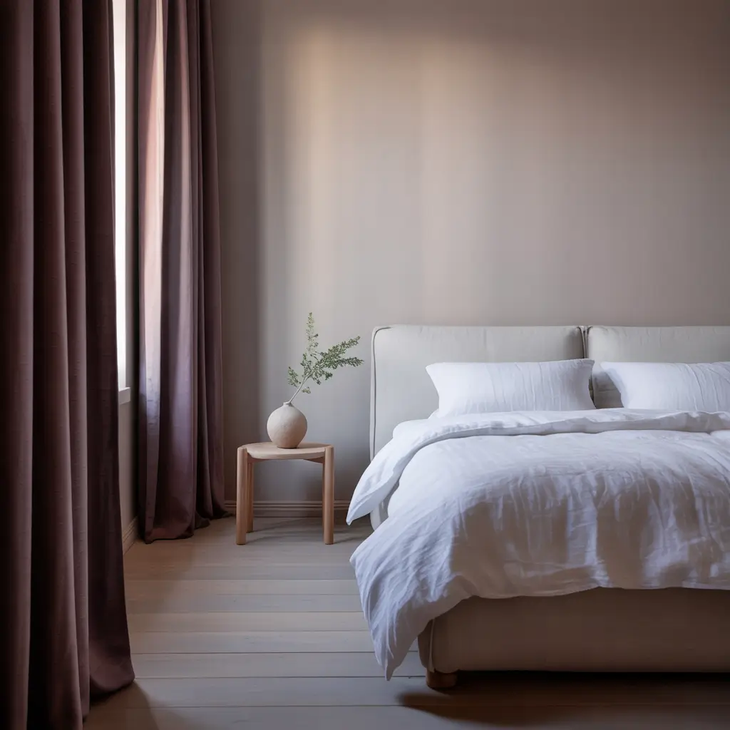 Who says minimalism has to be boring? Deep purple curtains in a minimalist bedroom create this incredible focal point that proves less really can be more. The contrast between sparse decor and that single pop of rich color is absolutely striking.