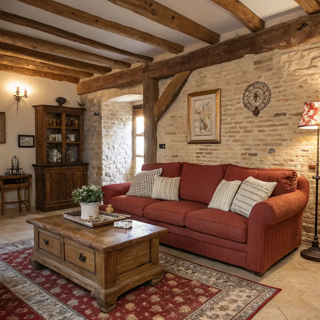 Picture this: your red couch surrounded by reclaimed wood, wrought iron, and cozy cabin feels. Sounds weird? It’s actually amazing. Red leather especially shines in rustic settings, looking like it belongs in a mountain lodge.