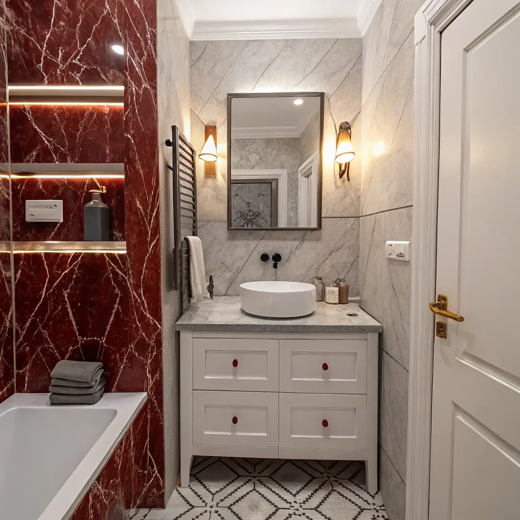 Think your bathroom’s too small for red marble? Think again! Strategic red marble accents can actually make a small bathroom feel more luxurious without overwhelming the space. The trick is knowing where to place them.