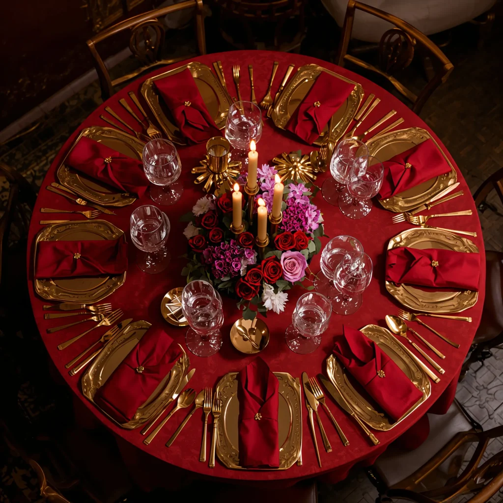 Pro tip: If you’re worried about the color being too intense for dining, use burgundy instead of bright red. It’s sophisticated, easier on the eyes during a meal, and photographs beautifully under both natural and artificial lighting.